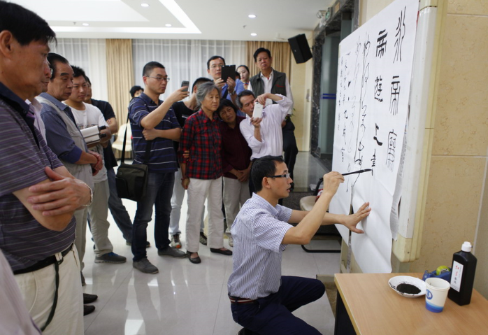 本網訊 (丁川華),一年好景君須記,最是橙黃橘綠時。在中秋國慶佳節到來之際,9月21日晚上,三峽集團書法 美術協會以書法為媒,舉辦2015年“迎中秋 慶國慶”書法講座暨現 場筆會。