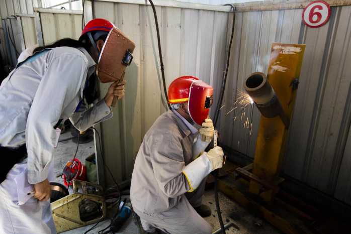 7月18日,在簡短的啟動儀式后,活動正式進入實際操作的比拼。率先登場的是電焊工,記者在位于白鶴灘壓力鋼管廠的比武現場看到,參賽選手們頭戴防護罩,手持電焊